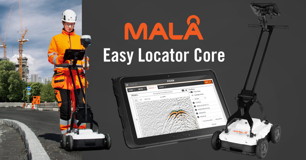 Inteligentny georadar nowej generacji do wykrywania infrastruktury podziemnej. Oferuje on najwyższą jakość danych na rynku oraz wsparcie interpretacji w czasie rzeczywistym za pomocą sztucznej inteligencji MALÅ AI . Easy Locator Core umożliwia ponadto bezprzewodowe zbieranie danych na urządzeniu mobilnym oraz zapis wyników w chmurze – dzięki integracji z platformą MALÅ Vision użytkownik może od razu przetwarzać i generować raporty z wyników nawet będąc w terenie . Cały system zaprojektowano dla maksymalnego usprawnienia pracy: od szybkiej konfiguracji, przez natychmiastowy podgląd zebranych profili, po automatyczne oznaczanie wykrytych obiektów (np. rur) z użyciem AI, co oszczędza czas i ułatwia pracę mniej doświadczonym operatorom.